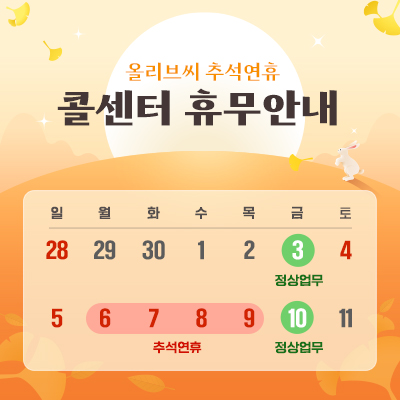 휴무기간 : 25. 10. 06 (월) ~ 25. 10. 09 (목) (10.03(금) 정상업무)